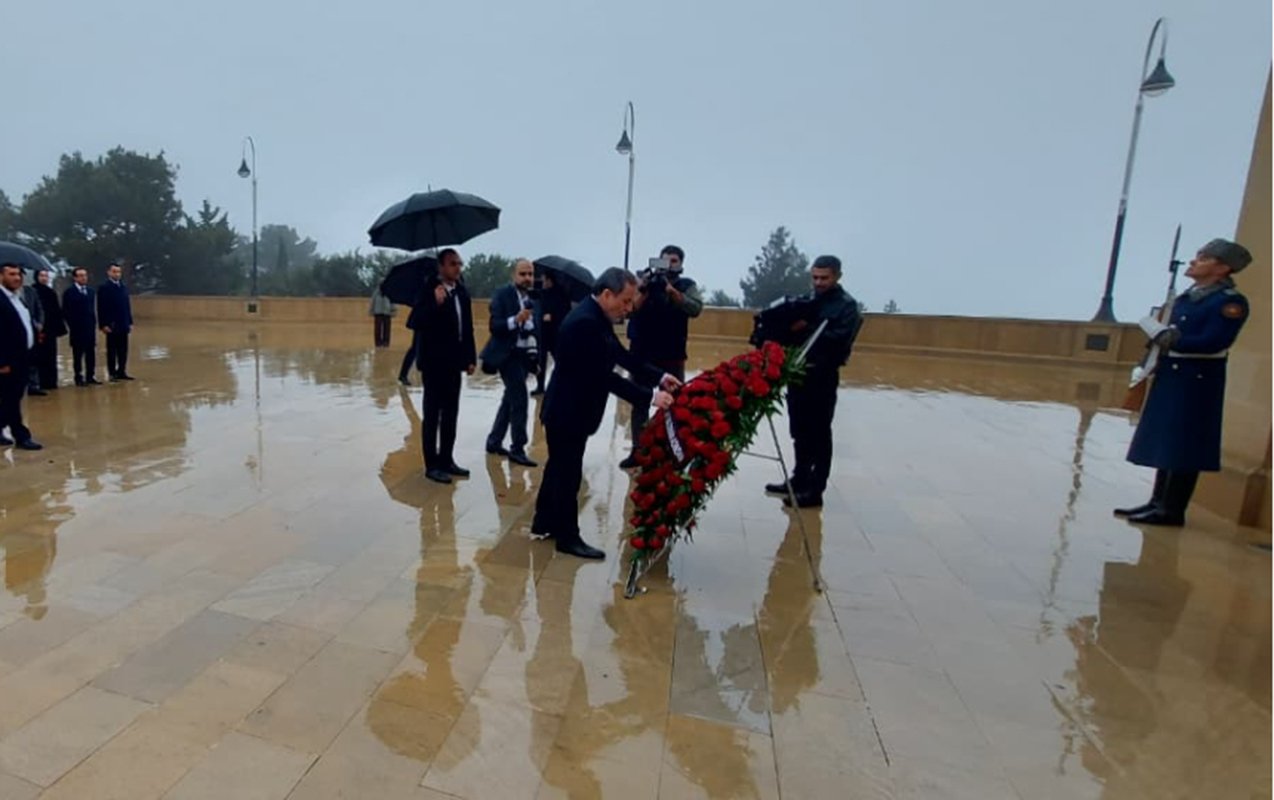 Alyans.media xəbər verir ki, nümayəndə heyəti Azərbaycanın müstəqilliyi və ərazi bütövlüyü uğrunda mübarizədə canlarından keçmiş qəhrəman Vətən övladlarının xatirəsini ehtiramla yad edib, “Əbədi məşəl” abidəsinin önünə əklil qoyub.