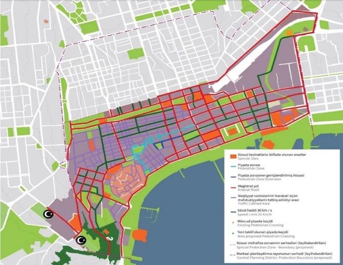 Tarixi ərazilərdən biri – Neftçilər prospektinin şimalı və Bülbül prospektinin qərbini əhatə edən zona avtomobilsiz “sakit zona”ya çevriləcək. Burada nəqliyyat əsas küçələrə yönləndiriləcək, daxili ərazi isə yalnız piyadalar üçün açıq olacaq. Bu yanaşma Avropanın bir çox şəhərlərində artıq uğurla tətbiq olunur”.