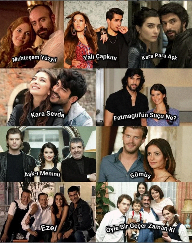 Bunlar “Muhteşem Yüzyıl”, “Yalı Çapkını”, “Kara Para Aşk”, “Kara Sevda”, “Fatmagül”ün Suçu Ne?”, “Aşk-ı Memnu”, “Gümüş”, “Ezel” və “Öyle Bir Geçer Zaman Ki…” seriallarıdır.