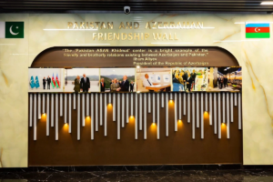 Mərkəzin girişində isə Azərbaycan–Pakistan dostluğunu əks etdirən xüsusi guşə yaradılıb. Burada Azərbaycan Prezidenti İlham Əliyevin iki ölkə arasındakı qardaşlıq münasibətlərini vurğulayan sitatı da yer alır.