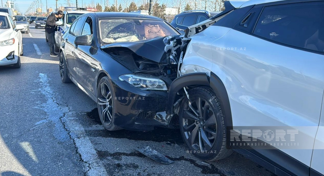 İlkin məlumata görə, iki “Opel”, “Toyota Prius”, “VAZ-2104”, “Changan” və “BMW” markalı minik avtomobilləri toqquşub.